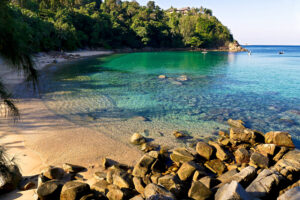 Naithon Beach to jedna z najbardziej niedocenianych plaż na Phuket – cicha, szeroka, otoczona zielenią i z dala od zgiełku turystycznych kurortów. To miejsce, gdzie